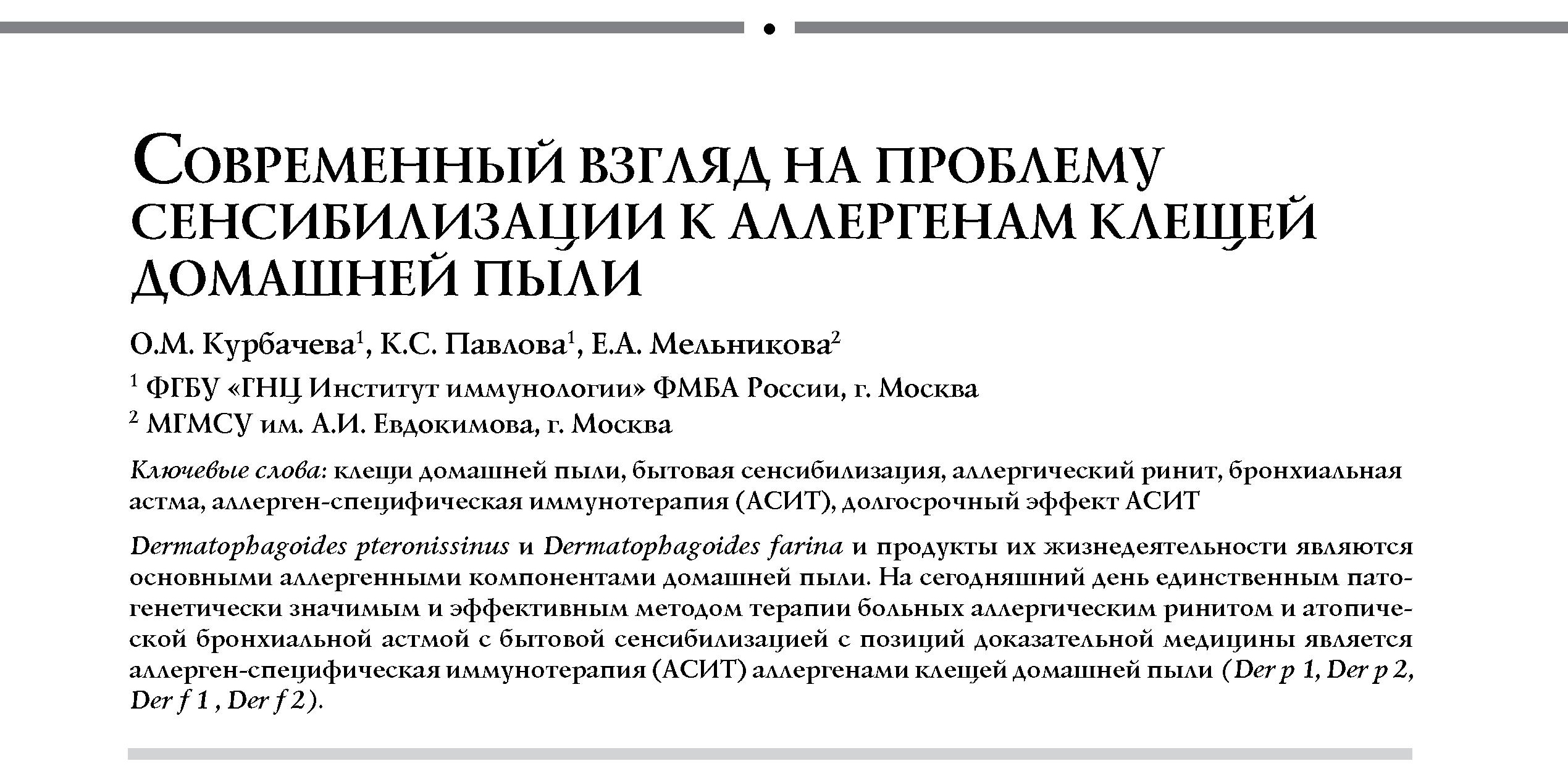 Современный взгляд на проблему сенсибилизации к аллергенам клещей домашней пыли
