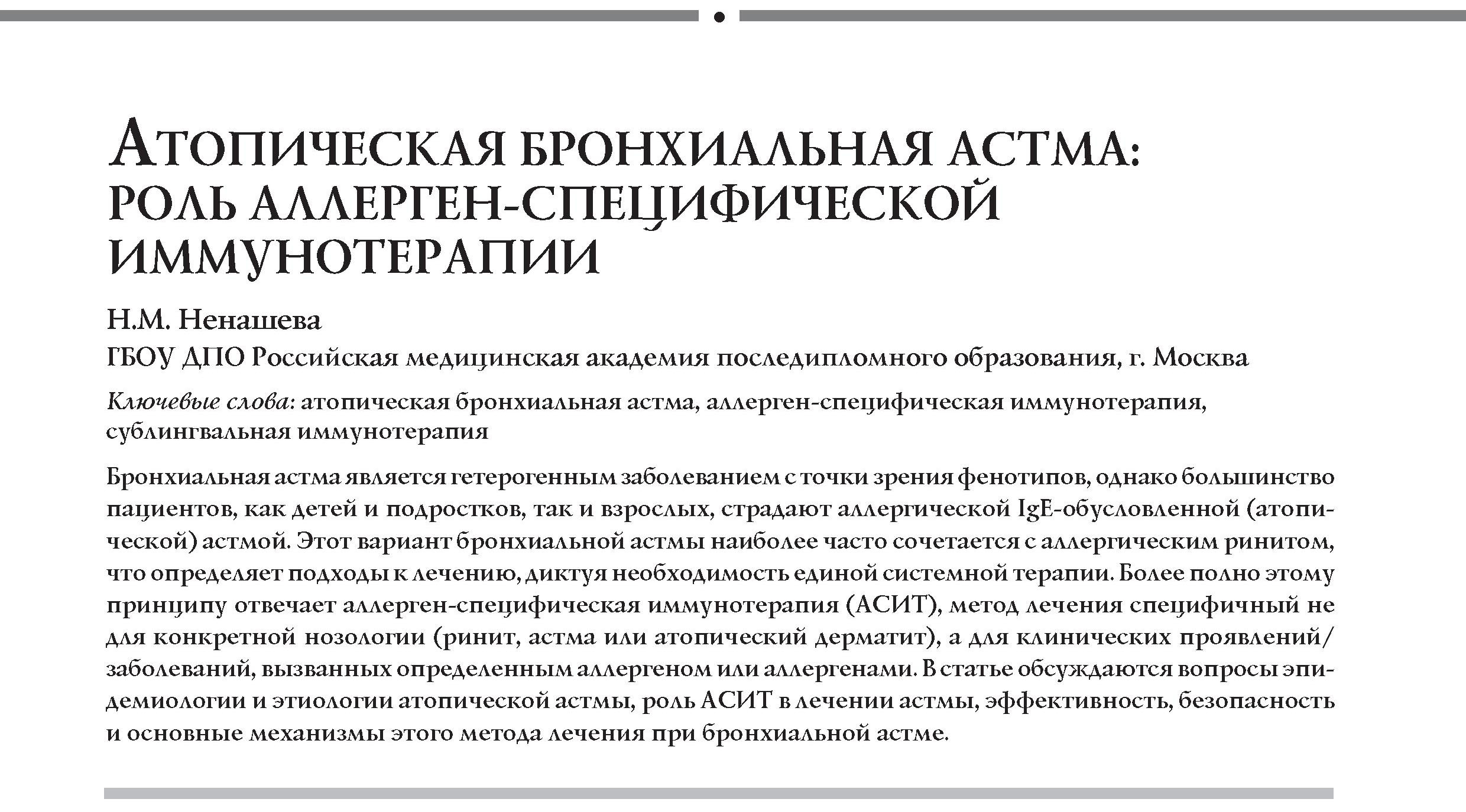 Атопическая бронхиальная астма: роль аллерген-специфической иммунотерапии