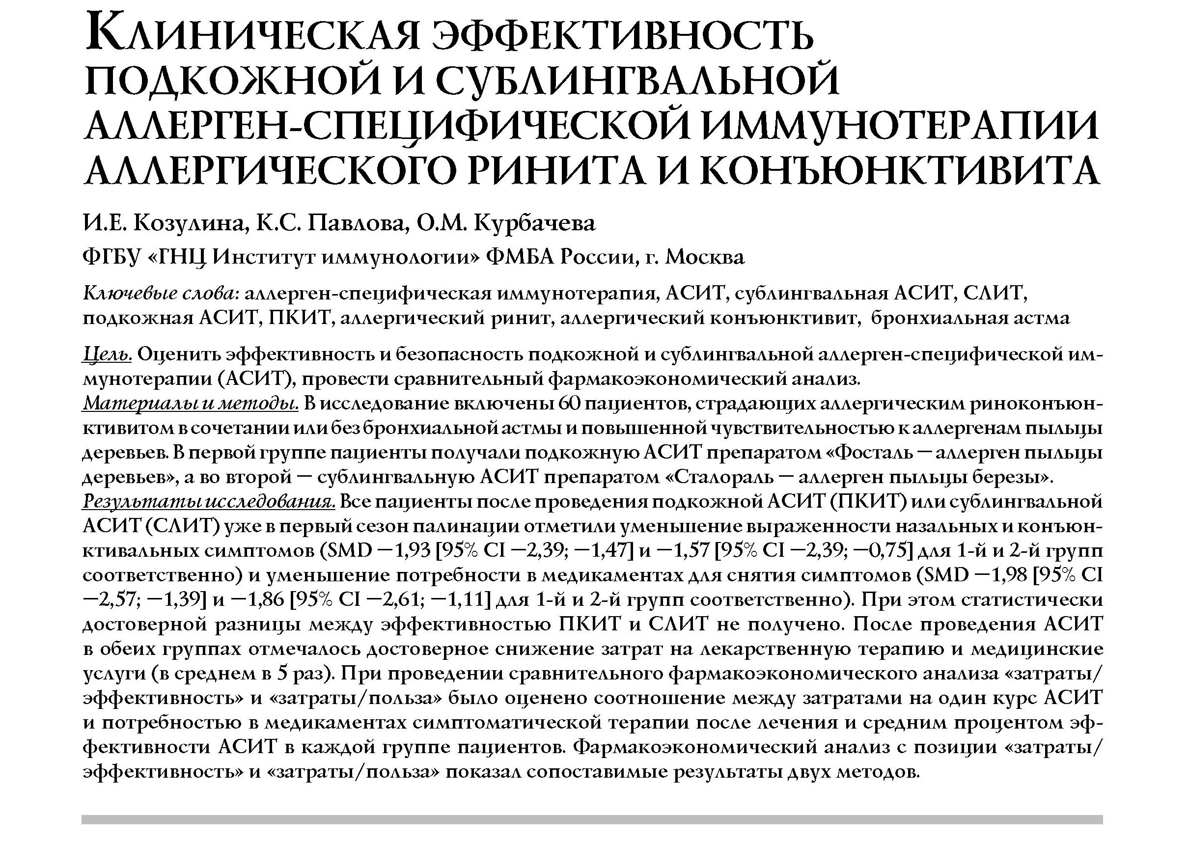 Клиническая эффективность подкожной и сублингвальной аллерген-специфической иммунотерапии аллергического ринита и конъюнктивита