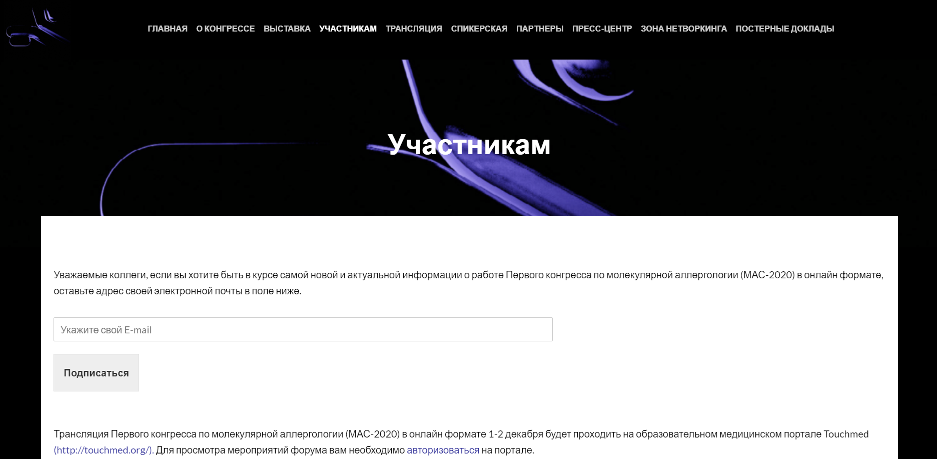 Уважаемые коллеги, добро пожаловать на онлайн 3D-платформу - maccongress.raaci.ru Первого конгресса по молекулярной аллергологии (МАС-2020)! Мы подготовили для Вас несколько разделов, которые упростят Ваше знакомство с новым форматом и позволят получить наиболее яркие впечатления от мероприятия.